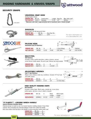 Spring-loaded closure ORDER NO. Mfr. No. Construction Length Ring Dia. Max. Safe Load*