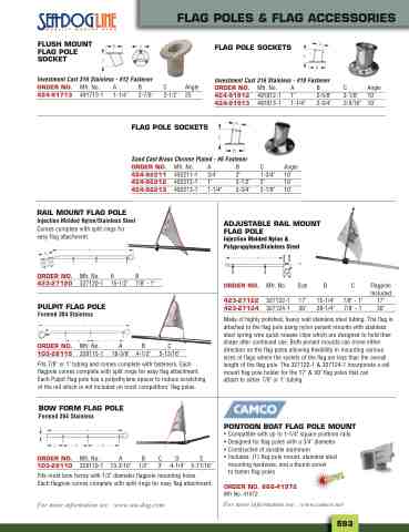 Made of highly polished, heavy wall stainless steel tubing. The flag is attached to the flag pole using nylon penant mounts with stainless steel spring wire quick release clips which are designed to hold their shape after continued use. Both penant mounts can move either direction on the flag poles allowing flexibility in mounting various sizes of flags where the eyelets of the flag are less than the overall length of the flag pole. The 327122-1 & 327124-1 incorporate a rail mount flag pole holder for the 17" & 30" flag poles that can