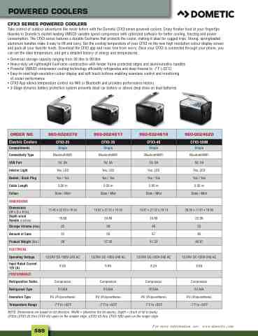 of cooler performance • CFX3 App allows temperature control via Wifi or Bluetooth and provides performance history • 3-Stage dynamic battery protection system prevents dead car battery or allows deep draw on dual batteries