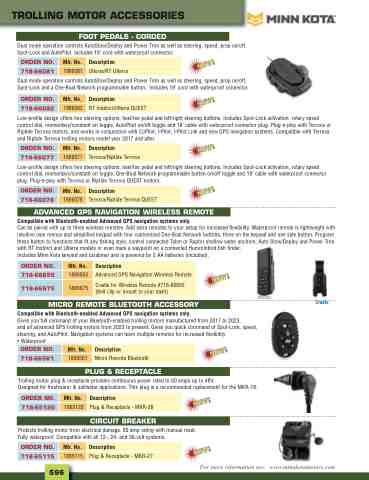Low-profile design offers two steering options: heel/toe pedal and left/right steering buttons. Includes Spot-Lock activation, rotary speed control dial, momentary/constant on toggle, AutoPilot on/off toggle and 18' cable with waterproof connector plug. Plug-n-play with Terrova or Riptide Terrova motors, and works in conjunction with CoPilot, i-Pilot, i-Pilot Link and new GPS navigation systems. Compatible with Terrova and Riptide Terrova trolling motors model year 2017 and after.
