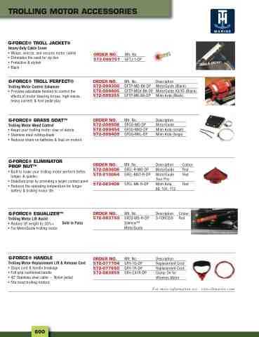 • Stops cord & handle breakage • Full grip cushioned handle • 42" Stainless steel cable – Nylon jacket • Fits most trolling motors