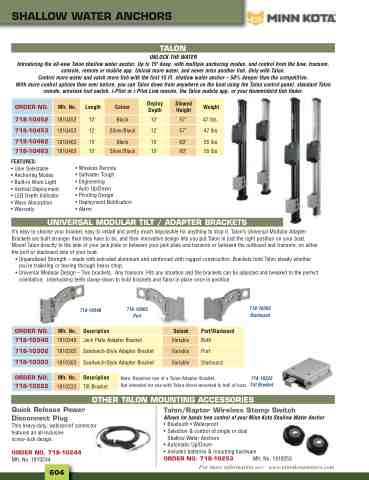 Shallow Water Anchors • Automatic Up/Down • Includes batteries & mounting hardware ORDER NO. 718-10253 Mfr. No. 1810253