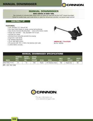 MANUAL DOWNRIGGER SPECIFICATIONS