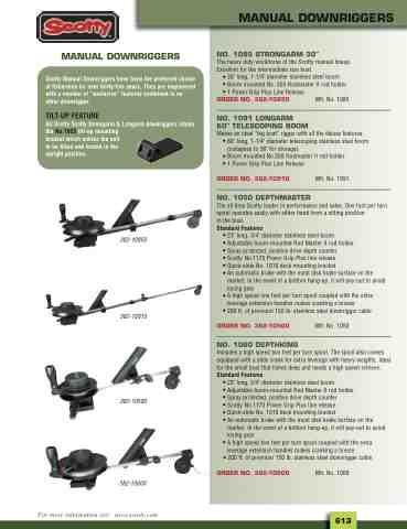 • 23" long, 3/4" diameter stainless steel boom • Adjustable boom-mounted Rod Master II rod holder • Spray protected, positive drive depth counter • Scotty No.1170 Power Grip Plus line release • Quick-slide No. 1010 deck mounting bracket • An automatic brake with the most disk brake surface on the