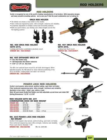 The 405 is an optional boom mount for all Scotty downriggers. When adjusted properly, the 405 allows for closer inboard positioning of the Orca rod holder, creating faster and easier rod removal. ORDER NO. 382-04050