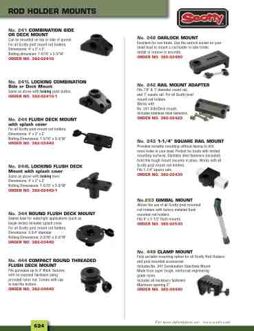 No.253 GIMBAL MOUNT Allows the use of all Scotty post mounted rod holders with factory installed flush mounted rod holders. Fits 9" x 1-1/2" flush mounts. ORDER NO. 382-02530