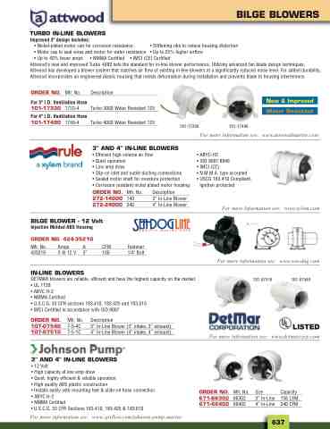 DETMAR blowers are reliable, efficient and have the highest capacity on the market. • UL 1128 • ABYC H-2 • NMMA Certified
