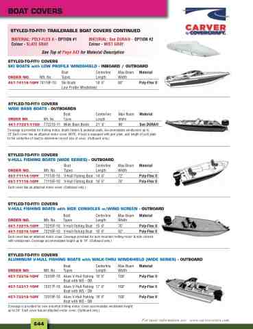 STYLED-TO-FIT® TRAILERABLE BOAT COVERS CONTINUED