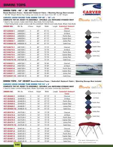 BIMINI TOPS - 46" / 36" HEIGHT Round Aluminum Frame / Sunbrella® Outdura® Fabric / Matching Storage Boot included * All 46" Height Bimini Top tubing can easily be cut down from 46" to 36" Height
