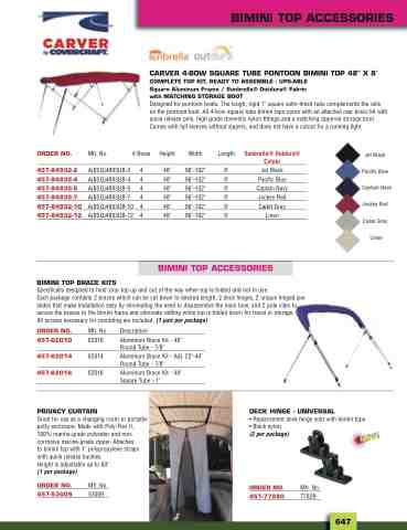 CARVER 4-BOW SQUARE TUBE PONTOON BIMINI TOP 48" X 8' COMPLETE TOP KIT, READY TO ASSEMBLE - UPS-ABLE Square Aluminum Frame / Sunbrella® Outdura® Fabric with MATCHING STORAGE BOOT