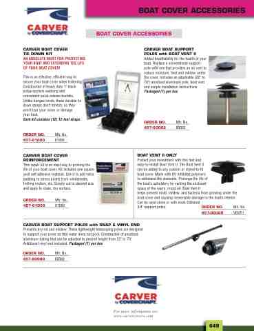 CARVER BOAT COVER REINFORCEMENT This repair kit is an ideal way to prolong the life of your boat cover. Kit includes one square yard self adhesive material. Use it to add extra padding to stress points from windshields, trolling motors, etc. Simply cut to desired size and apply to clean, dry surface.
