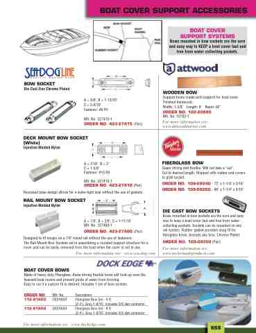 Bows mounted in bow sockets are the sure and easy way to keep a boat cover taut and free from water- collecting pockets. Sockets can be mounted on any rail system. Rubber gasket provides snug fit for fiberglass bows. Accepts any bow. Chrome Plated.