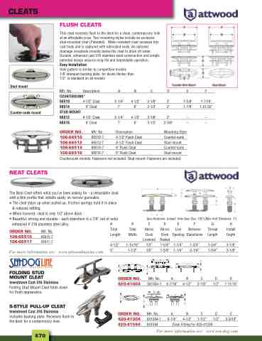 FOLDING STUD MOUNT CLEAT Investment Cast 316 Stainless Folding Stud Mount Cleat folds down for flush appearance,