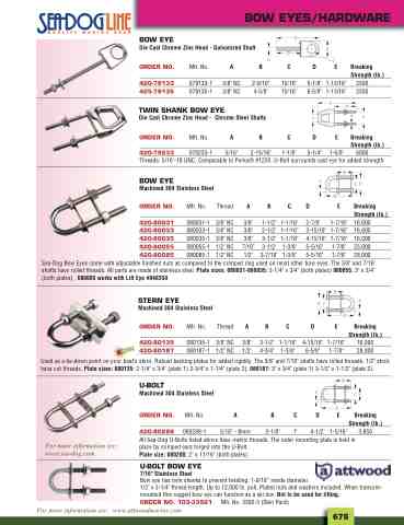 Bow eye has twin shanks to prevent twisting. 1-9/16” inside diameter. 1/2" x 3-1/4" thread length. Up to 12,000 lb. pull. Plated nuts and washers included. When transom- mounted this rugged bow eye can function as a ski tow. Not to be used for lifting. ORDER NO. 103-33921 Mfr. No. 3392-3 (Skin Pack)