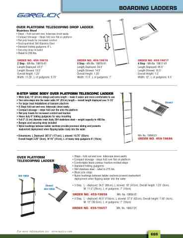 OVER PLATFORM TELESCOPING DROP LADDER Stainless Steel • Steps – Fold out and over, telescope down easily • Compact Stowage – Steps fold over flat on platform