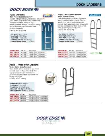 Available in bright white polyester finished GalvalumeTM. These ladders will make a durable and attractive addition to your dock, seawall or any marine application. Heavy 1-1/2" (3.8cm) tubing ensures a positive grip and stainless steel;