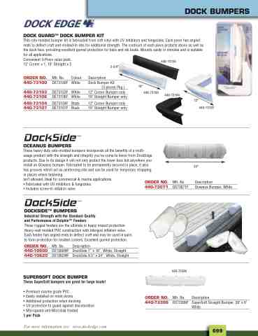 • Premium marine grade PVC • Easily installed on most docks • Additional protection when docking • UV protection to guard against discoloration • Microguard anti-Microbial treated 1 per Pack