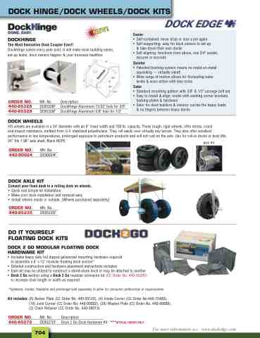 to assemble a 6' x 12' modular floating dock section* • Detailed construction and hardware placement instructions included • Each kit may be utilized to construct a stand-alone dock or may be attached to another • Dock 2 Go section using a Dock 2 Go modular connector kit (CC Order No. 440-85205)