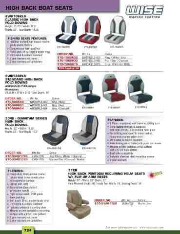3126 HIGH BACK PONTOON RECLINING HELM SEATS W/ FLIP UP ARM RESTS Height: 27" - Width: 26", Depth: 27" Fully Reclined Depth: 46", Inside Arm Width: 19", Seating Depth: 18"
