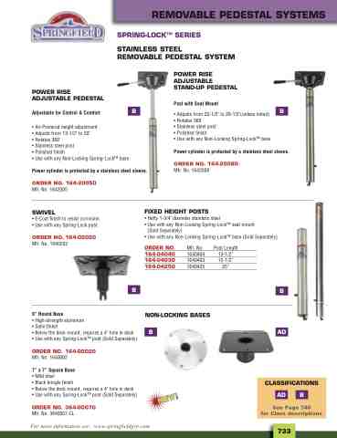 • Hefty 1-3/4" diameter stainless steel • Use with any Non-Locking Spring-LockTM seat mount