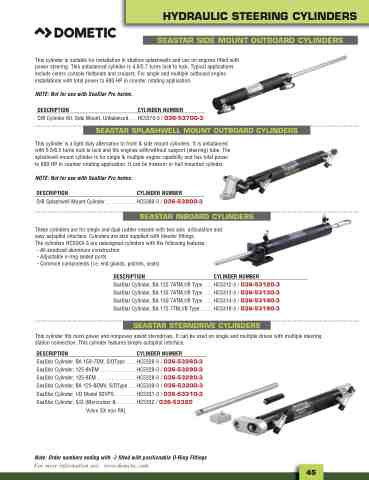 SeaStar Cylinder, BA 150-7EM, S/DType . . . . SeaStar Cylinder, 125-8VEM . . . . . . . . . . . . . SeaStar Cylinder, 125-8EM . . . . . . . . . . . . . . SeaStar Cylinder, BA 125-8EMV, S/DType . . . SeaStar Cylinder, I/O Model 92VPS . . . . . . . . SeaStar Cylinder, S/D (Mercruiser & . . . . . . .
