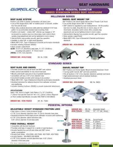 spider combinations • Accepts Seat Slides : 459-22000, 459-75080, 459-75081, 459-75083 • Accepts Spiders : 459-99023,459-99036 • 2-7/8" (7cm) diameter smooth stanchion tube, 9.25" (23cm)