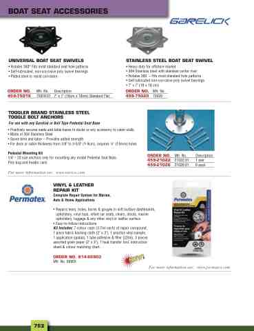 • Rotates 360° Fits most standard seat hole patterns • Self-lubricated, non-corrosive poly swivel bearings • Plated steel to resist corrosion