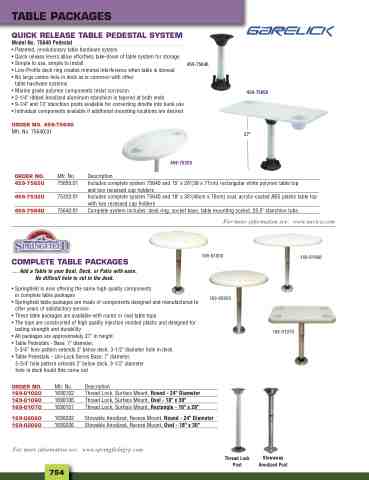 table hardware systems • Marine grade polymer components resist corrosion • 2-1/4" ribbed Anodized aluminum stanchion is tapered at both ends • 9-1/4" and 13" stanchion posts available for converting dinette into bunk use • Individual components available if additional mounting locations are desired