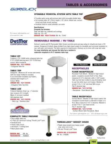 • Provides salon areas and pontoon deck with removable dinette table • Set includes table 30" (76cm) height, 2.25" (6cm) ribbed tube, surface