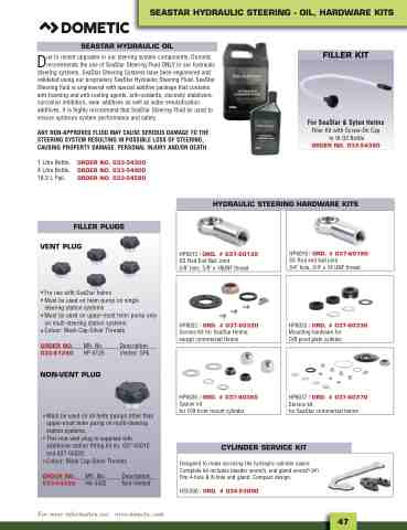 Due to recent upgrades in our steering system components, Dometic recommends the use of SeaStar Steering Fluid ONLY in our hydraulic steering systems. SeaStar Steering Systems have been engineered and