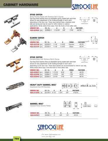 Sea-Dog Stud Catches have an adjustable spring loaded ball catch that allows for easy adjustment of the holding strength of each catch depending on the door size. These stud catches have a stainless steel ball and spring and may be used for either interior or exterior applications. Strike enters three ways, from the front or from either side.
