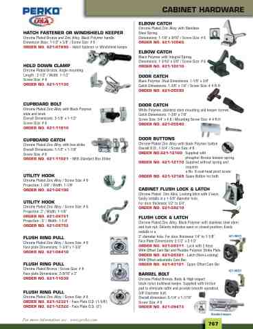 White Polymer, stainless steel mounting and keeper screws. Catch Dimensions: 1-3/8" x 7/8" Screw Size: 3/4" x # 8 / Mounting Screw Size: # 4 R.H ORDER NO. 621-05540