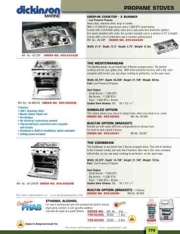 Heavy duty, stainless steel, drop in cooker. With a 11,000 BTU large burner and a 7,000 BTU small burner. Comes with a CGA/AGA safety valve and a safe push turn electronic ignition. It is easily installed with under the counter brackets and is a shallow 4.75" in height. Comes with a set of potholders and a wooden cutting board. Mfr. No.- 00-2BP ORDER NO. 850-22222B