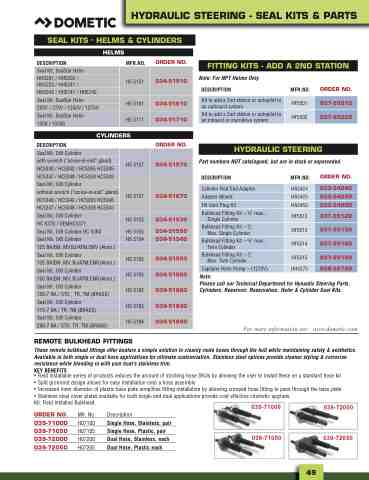Note: Please call our Technical Department for Hynautic Steering Parts, Cylinders, Reservoir, Reservalves, Helm & Cylinder Seal Kits.