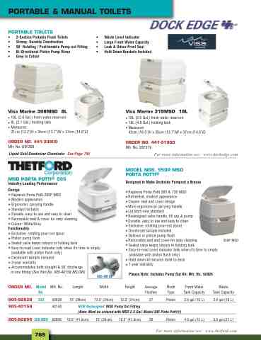 • Bellows or piston pump flush •Removable seat and cover for easy cleaning 550P MSD • Sealed valve keeps odours in holding tank • Easy-to-read Level Indicator tells when it’s time to empty