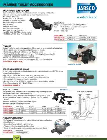 New model passes solids and is particularly effective in emptying holding tanks. The multi-positional pump head offers a variety of installation options. • 5 Gpm (19 lpm) output • Self-priming up to 10ft (3m)