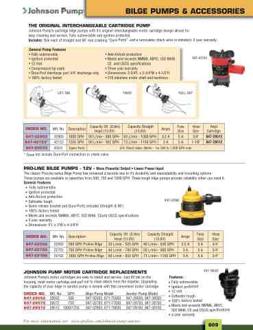 PRO-LINE BILGE PUMPS - 12V - More Powerful Output • Lower Power Input The classic ProLine series Bilge Pump has remained a favorite due to it’s durability and dependability and mounting options These pumps are available in capacities from 500, 750 and 1000 GPH. These tough bilge pumps provide reliability when you need it. General Features