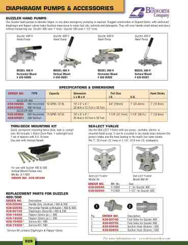 Use Guzzler hand pumps to dewater bilges, or any place emergency pumping is required. Rugged construction of Dupont Delrin, with reinforced diaghragm and flapper valves make Guzzlers impervious to many fuel oils, solvents and detergents. They will even handle small stones and slurry without hampering use. Guzzler 400 uses 1" hose - Guzzler 500 uses 1-1/2" hose.