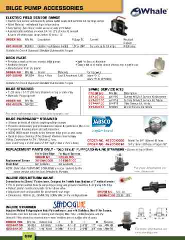 • Provides a neat cover over manual bilge pumps • Aesthetic designs • Manufactured from UV plastic ORDER NO. Mfr. No. Model