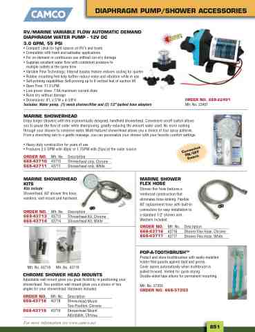MARINE SHOWERHEAD KITS Kits include: Showerhead, 60" shower flex hose, washers, wall mount and hardware.