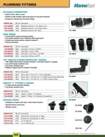 • Provide tight fit without • Fits marine sanitation hose • Molded of high-impact nylon • Threads have been precision molded fo proper fit • Resists electrolysis
