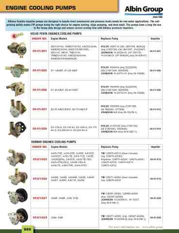 Albinus flexible impeller pumps are designed to handle most commercial and pleasure boats needs for raw water applications. The self- priming ability makes FIP pumps being the right choice for engine cooling, bilge pumping, and deck wash. The pumps have a long life due to the heavy-duty design and ensure correct cooling flow with Albinus premium impellers.