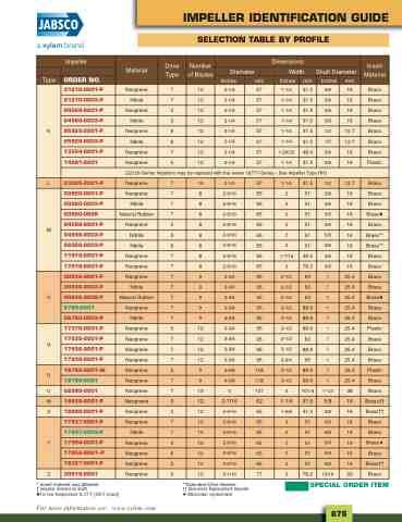 IMPELLER IDENTIFICATION GUIDE SELECTION TABLE BY PROFILE
