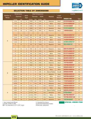IMPELLER IDENTIFICATION GUIDE SELECTION TABLE BY DIMENSIONS