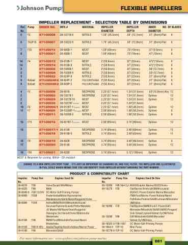IMPELLER REPLACEMENT - SELECTION TABLE BY DIMENSIONS