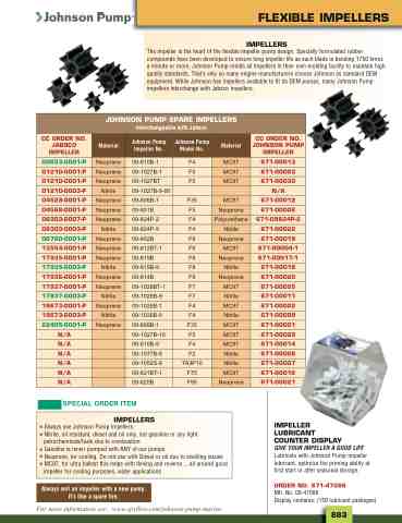 • Always use Johnson Pump impellers • Nitrile, oil resistant, diesel and oil only, not gasoline or any light
