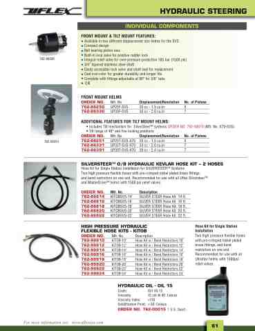 Hose Kit for Single Station Installation for SILVERSTEERTM Systems Two high pressure flexible hoses with pre-crimped nickel plated brass fittings, and bend restrictors on one end. Recommended for use with all Uflex SilversteerTM and MasterDriveTM helms with 1500 psi relief valves.
