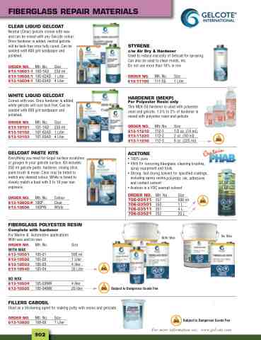 Used as a thickening agent for making putty with resins and gelcoats. ORDER NO. Mfr. No. Size