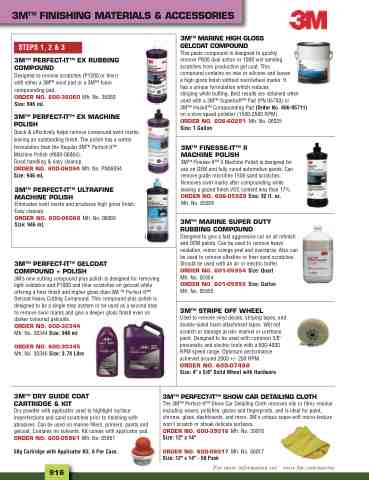 3MTM PERFECT-ITTM EX RUBBING COMPOUND Designed to remove scratches (P1200 or finer) with either a 3MTM wool pad or a 3MTM foam compounding pad.