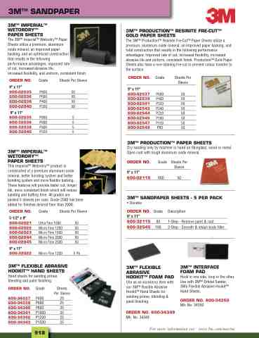 3MTM IMPERIALTM WETORDRYTM PAPER SHEETS This ImperialTM WetordryTM product is constructed of a premium aluminum oxide mineral, better bonding system and better bonding system and more flexible backing. These features will provide faster cut, longer life, more consistent finish which will reduce sanding and buffing time. All grades are packed 5 sleeves per case. Grade 2500 has been added for finishes desired finer than 2000.